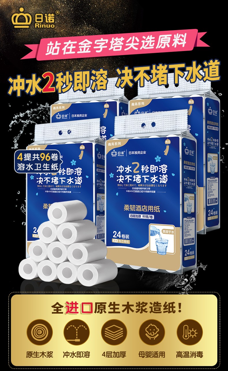 日诺水溶性溶水卫生纸 日诺可冲水卫生纸 批发